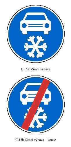 Zimní výbava“ (č. C 15a), která přikazuje řidiči motorového vozidla kategorie M nebo N8) v období od 1. listopadu do 30. dubna pokračovat v jízdě jen za použití zimních pneumatik9), a to u motorových vozidel o maximální přípustné hmotnosti nepřevyšující